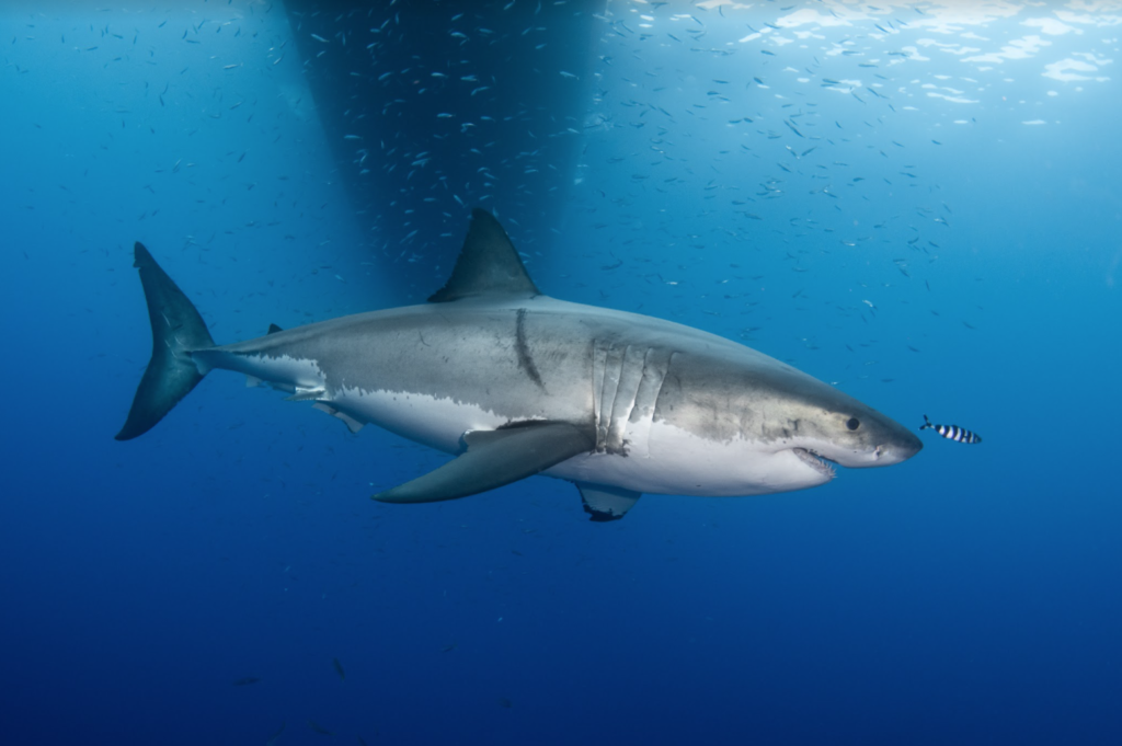 Observation en Italie d'un grand requin blanc qui s'attaque à un requin renard pêché et remonté le long d'un bateau de plaisance